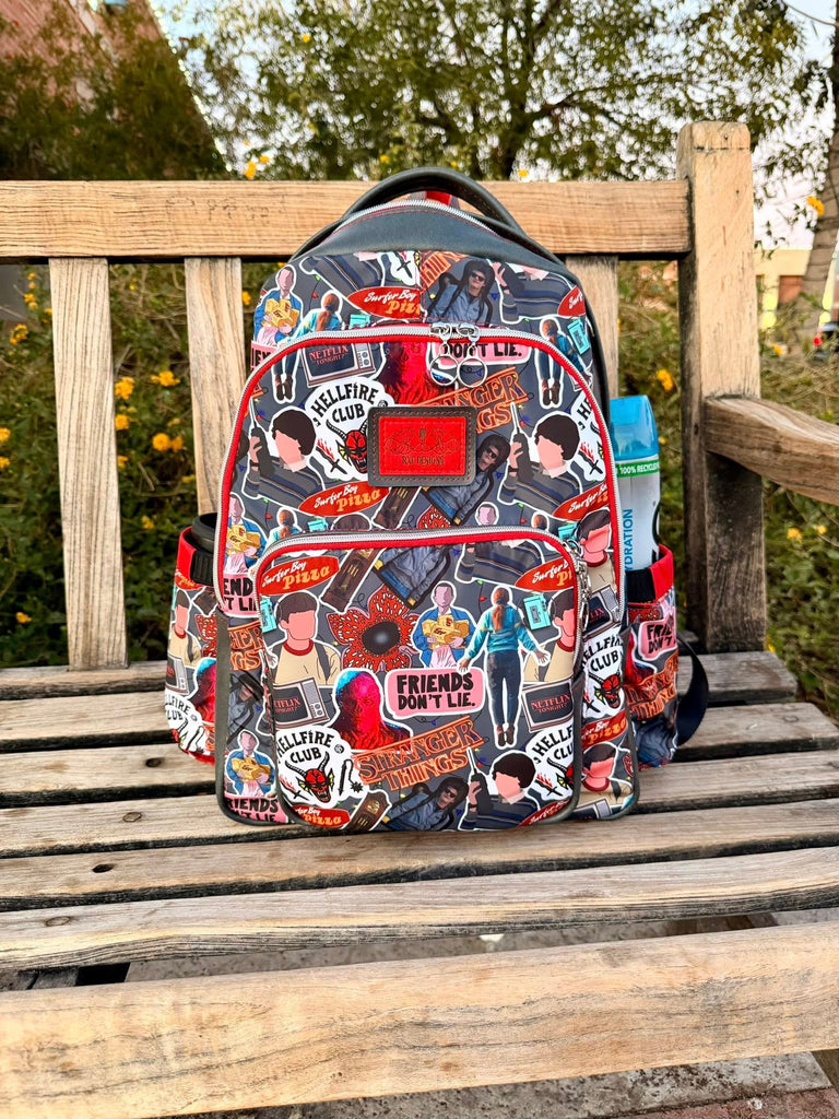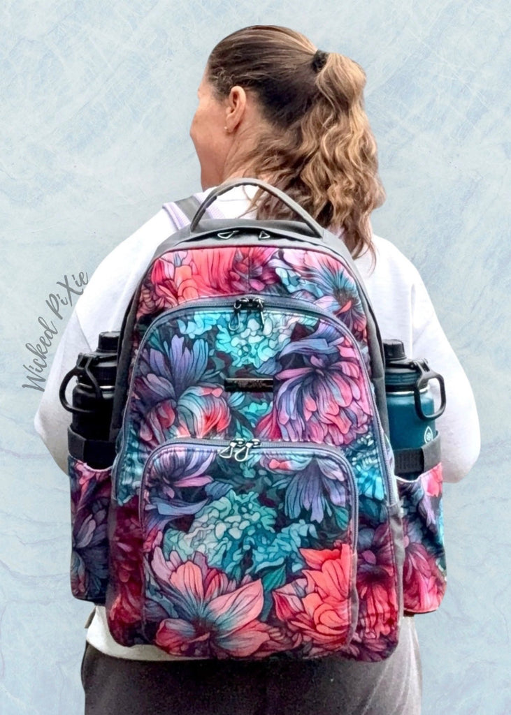 The Andy Backpack comes in one size, ideal for keeping you organized while getting an education or travelling for work! The Main Section contains the giant slip pocket with magnetic flap to hold your laptop comfortably, or safely keep your papers. The Front Section features a zipper pocket, glasses pocket, and optional key leash, all of which are optional and the perfect type of pockets to add to other bags! The Front Pocket then features a zipper mesh pocket. The back has padded straps that are reinforced, and the sides feature unique water bottle pockets that prevents condensation from collecting. Cover the zipper or leave it visible and show it off, as the zip cover is optional!