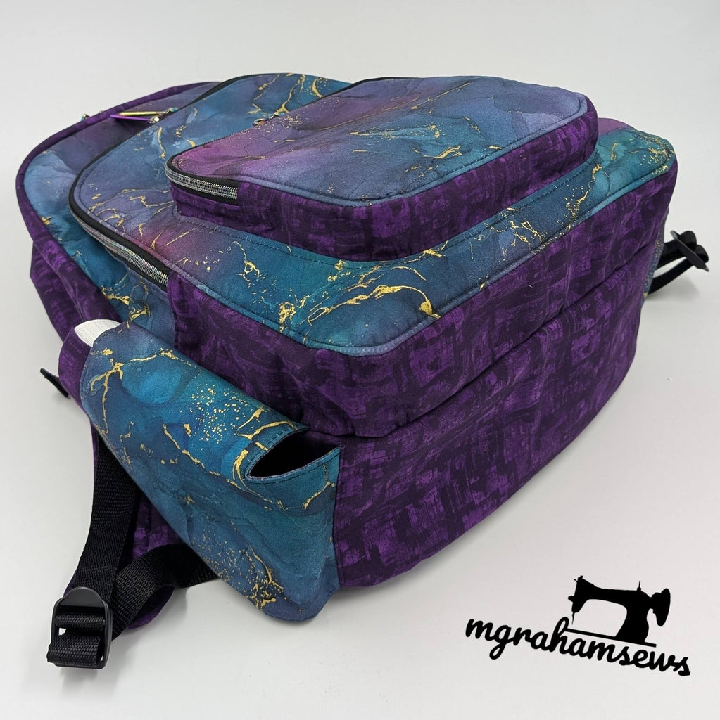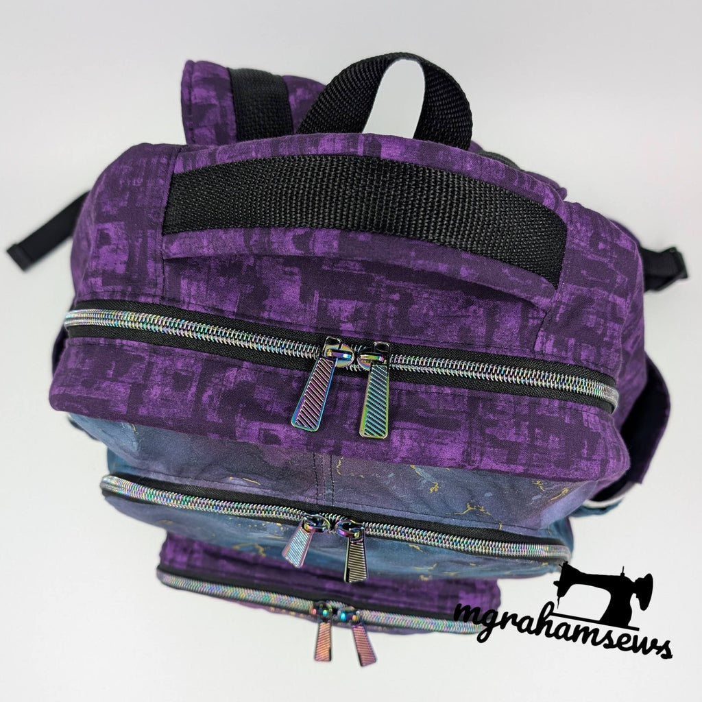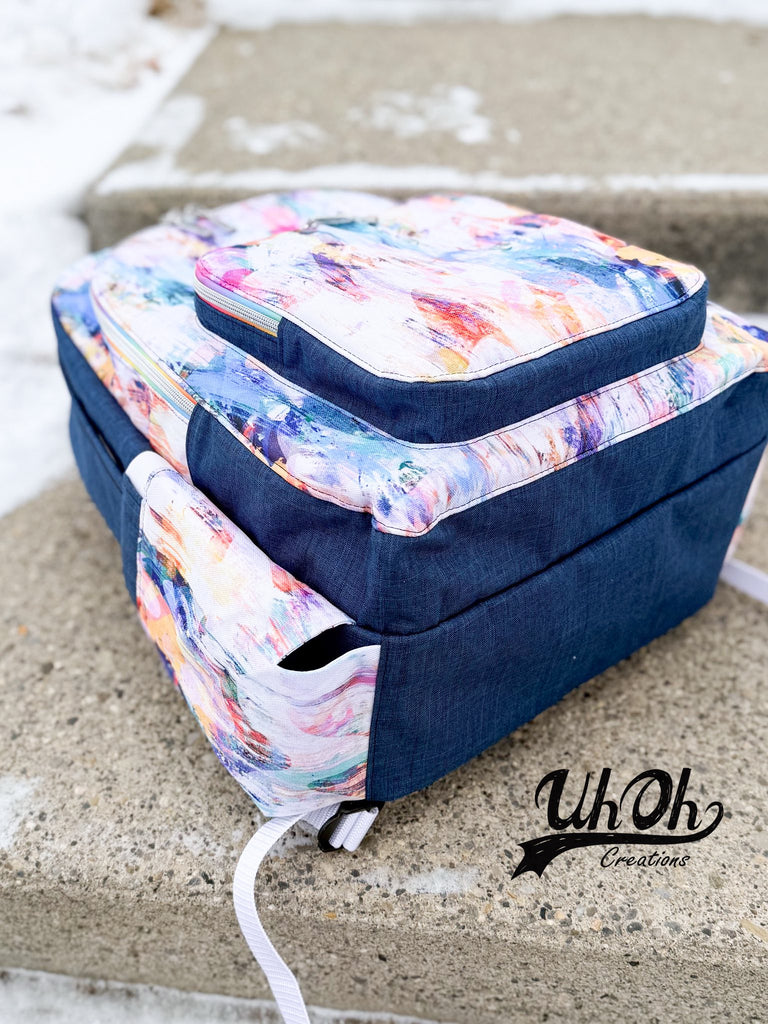 The pattern was designed for your favorite exterior materials such as waterproof canvas, bonded nylon, waxed canvas, or canvas! Also consider quilting cotton or light denim to keep it domestic sewing machine friendly! If you want to adapt it to cork, vinyl, or faux leather you will want to change up the interfacing and stabilizers to suit your chosen materials and may require an industrial sewing machine for the final construction.